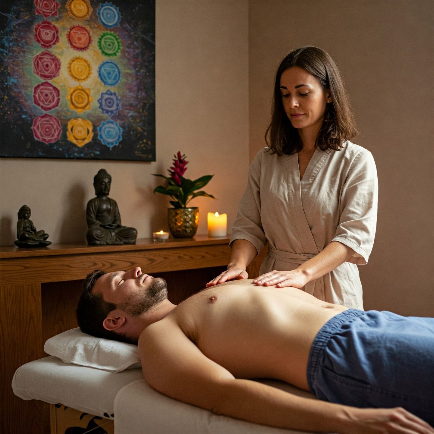 Le Reiki est au cœur de ma pratique, pour soutenir une détente profonde et une harmonisation de l’énergie. J’y associe l’harmonisation des chakras et des soins corporels, afin d’agir à la fois sur le plan physique, émotionnel et énergétique, selon ce que ton corps exprime et ce dont tu as besoin sur le moment.